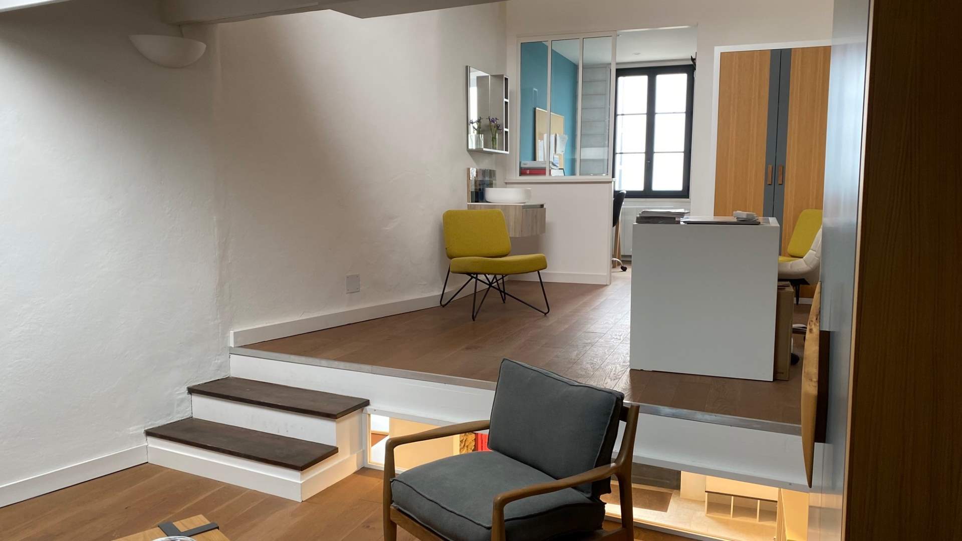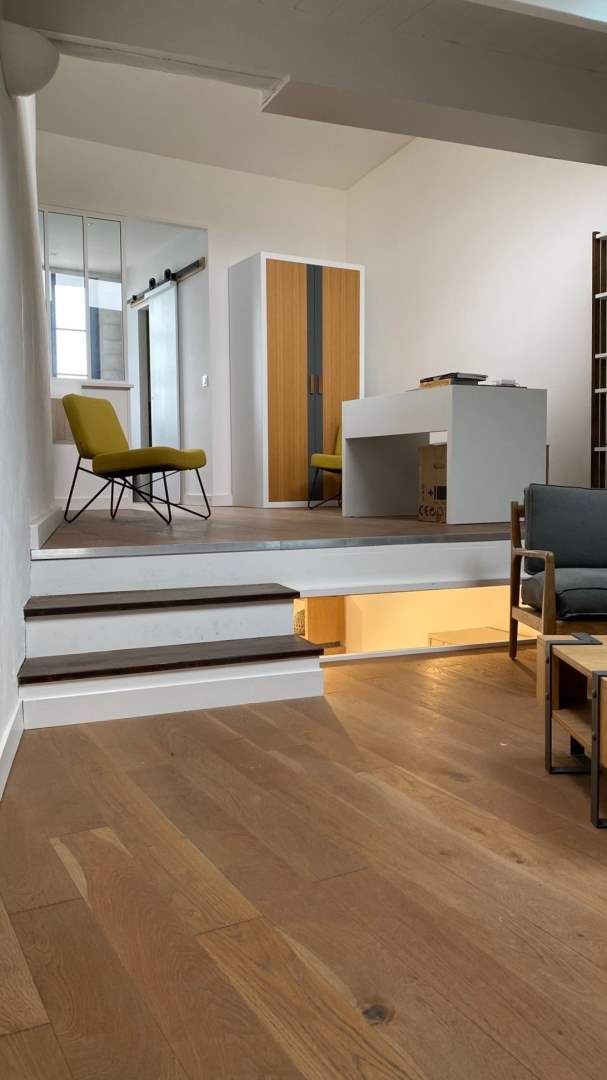 Bâtiment entièrement rénové en 2019, sur deux étages, composé d'un 1er hall d'exposition de 32 m² et d'un second hall d'exposition de 35 m², à l'étage deux salles d'exposition, un bureau, une kitchenette et un WC.