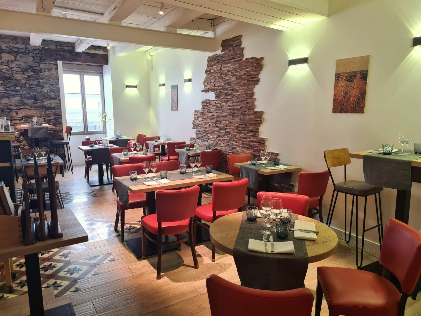 Une salle de restaurant avec coin bar pouvant accueillir 40 couverts et une terrasse de 12 couverts, deux cuisines, deux plonges, des sanitaires aux normes PMR.