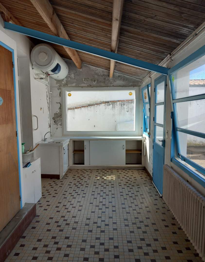 Maison à rénover, comprenant, une entrée, un salon avec cheminée, une cuisine, deux chambres, une salle d'eau et une véranda avec WC.